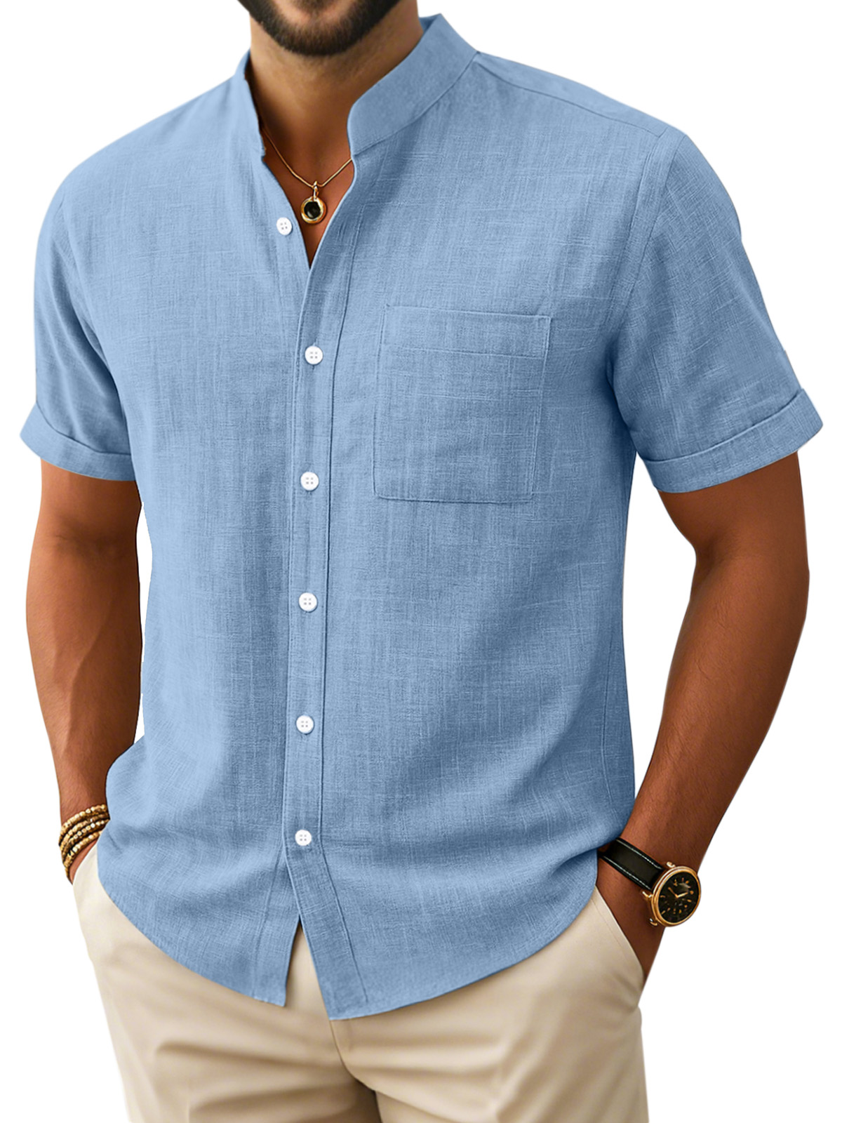 Herren Freizeit Einfarbig Vintage Lockere Tasche Kurzarm Button-Down Henley Hemd€45,99 EUR€91,98 EUR