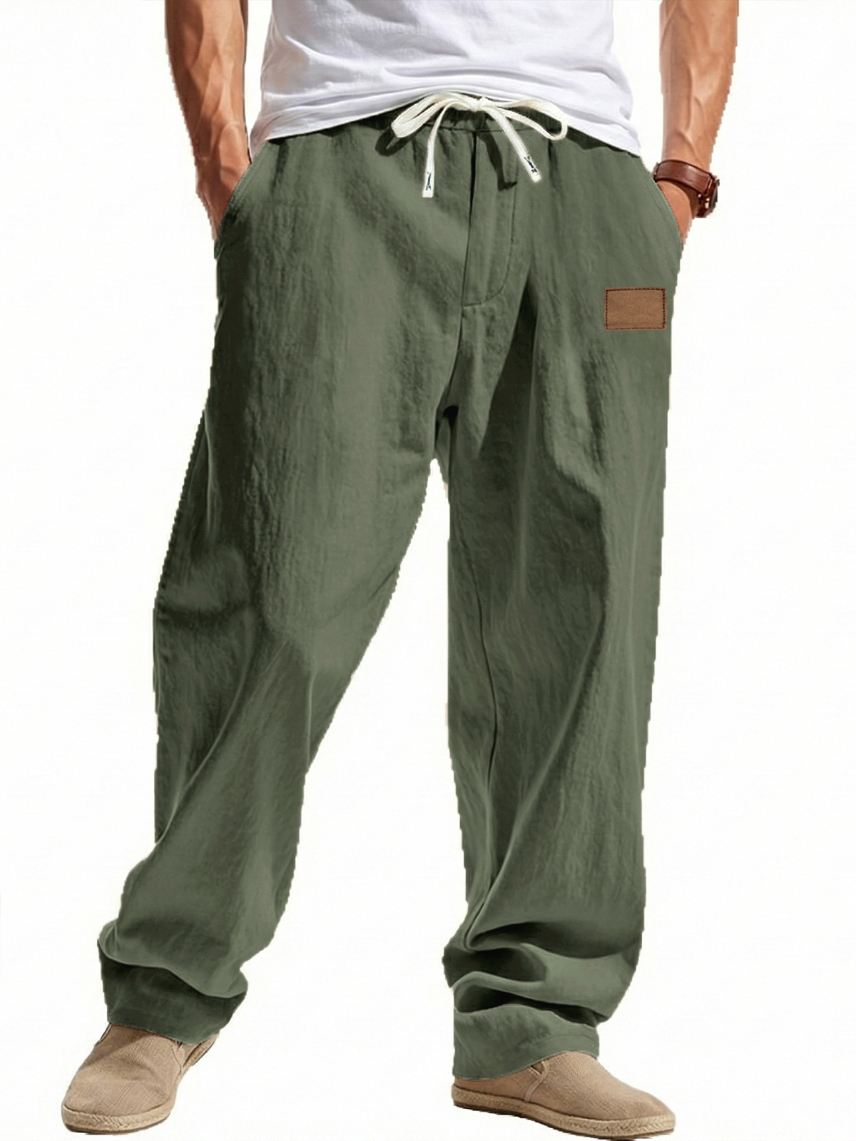 Herren modische lässige Leinenhosen mit elastischem Bund, bestickte Logo-Taschen€49,98 EUR€99,96 EUR