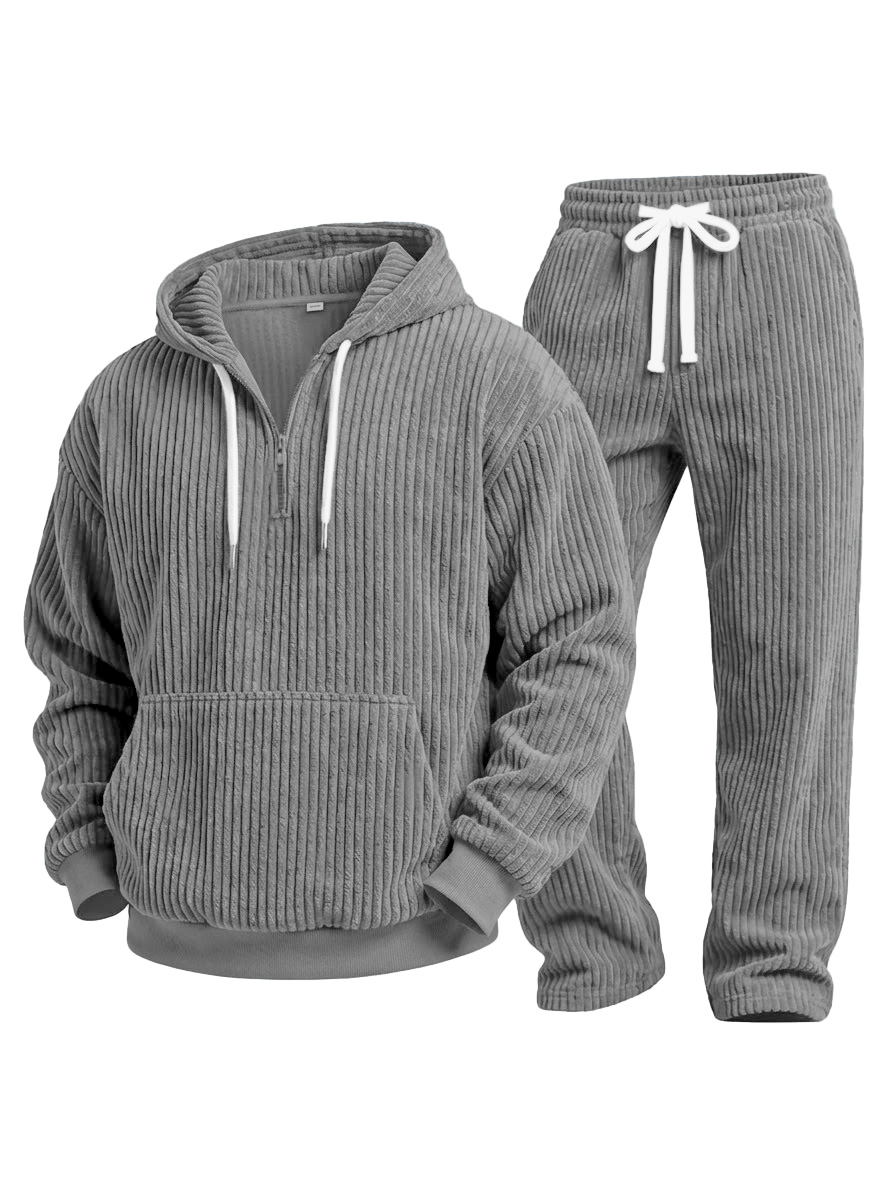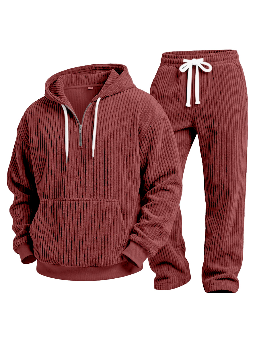 Lässiges einfarbiges Corduroy-Sweatshirt und Hose Zweiteiliges Set