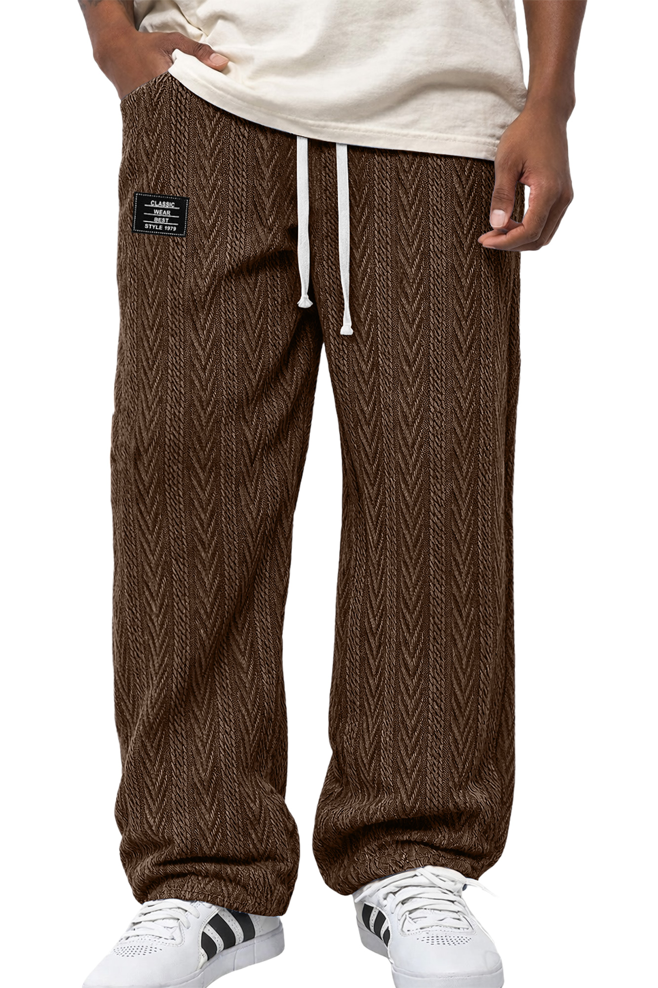 Herren Freizeit Jacquard Strukturierte Bestickte Logo Elastischer Bund Lockere Hose