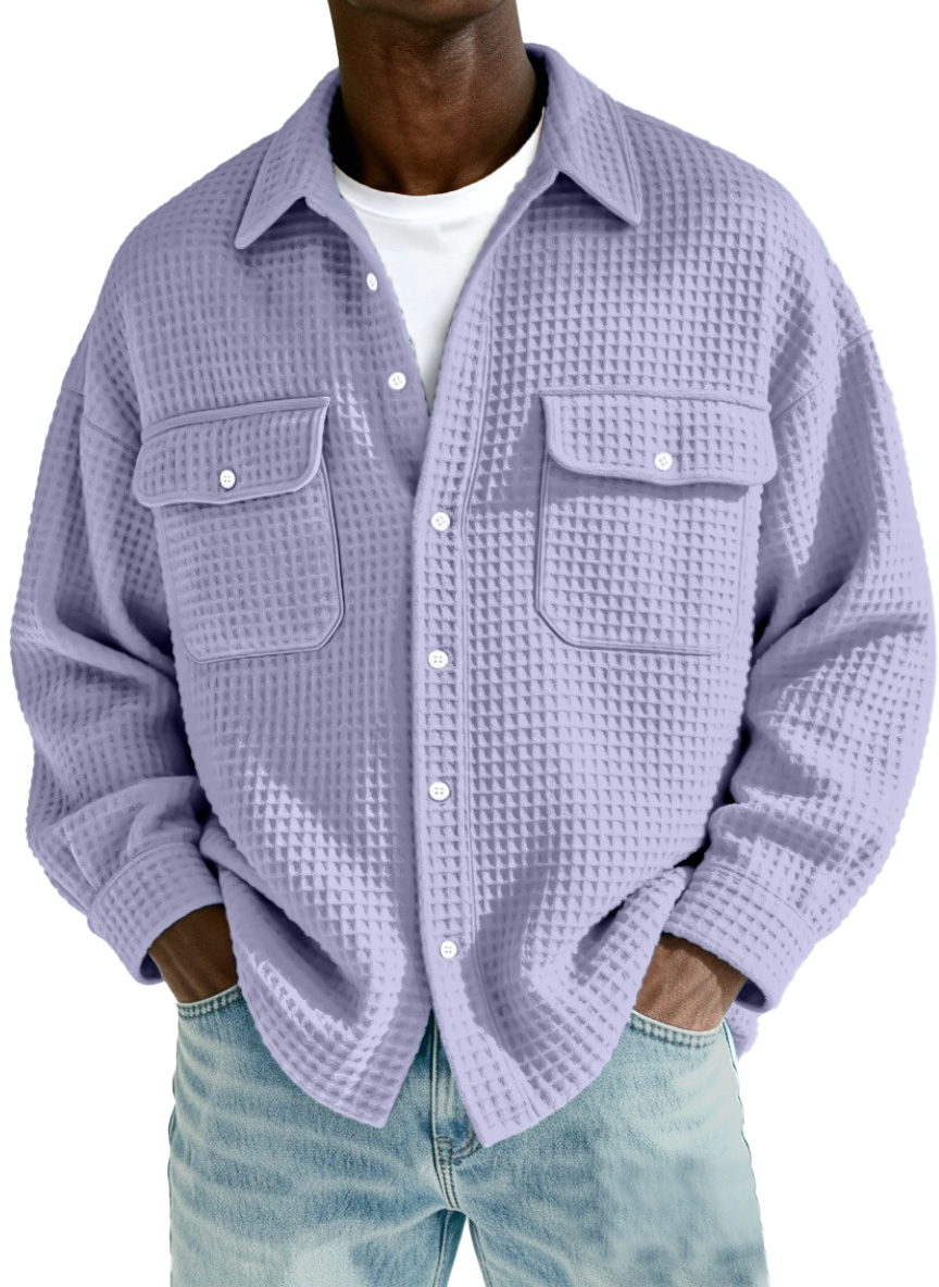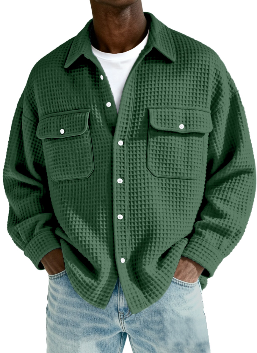 Herren Freizeit Einfach Einfarbig Waffel Doppelter Taschen Langarmhemd