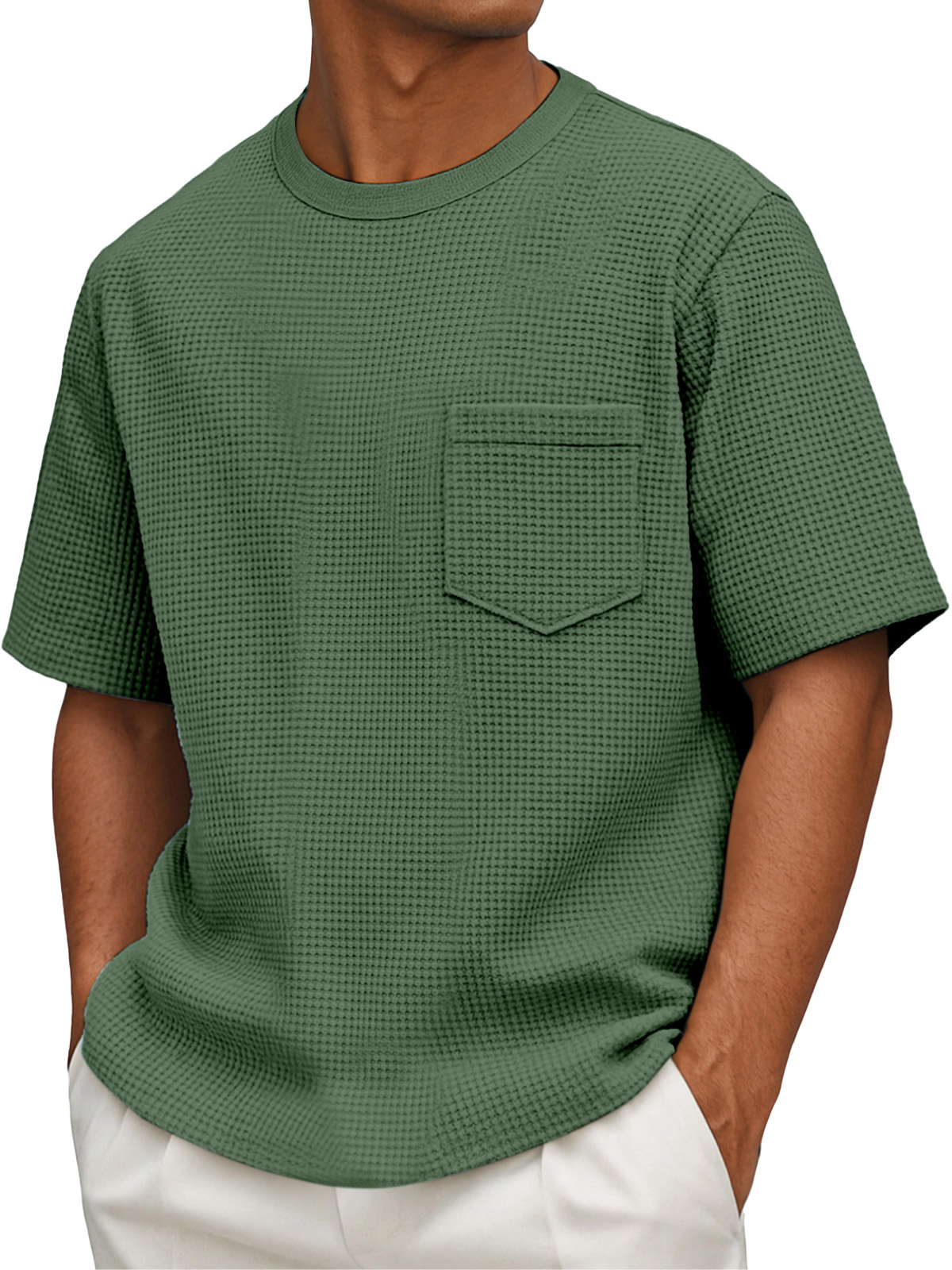 Herren Freizeit Einfach Waffel Kurzarm Rundhals T-Shirt