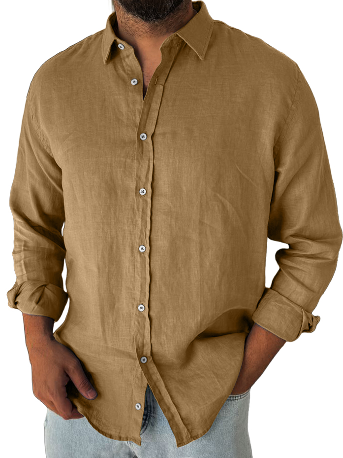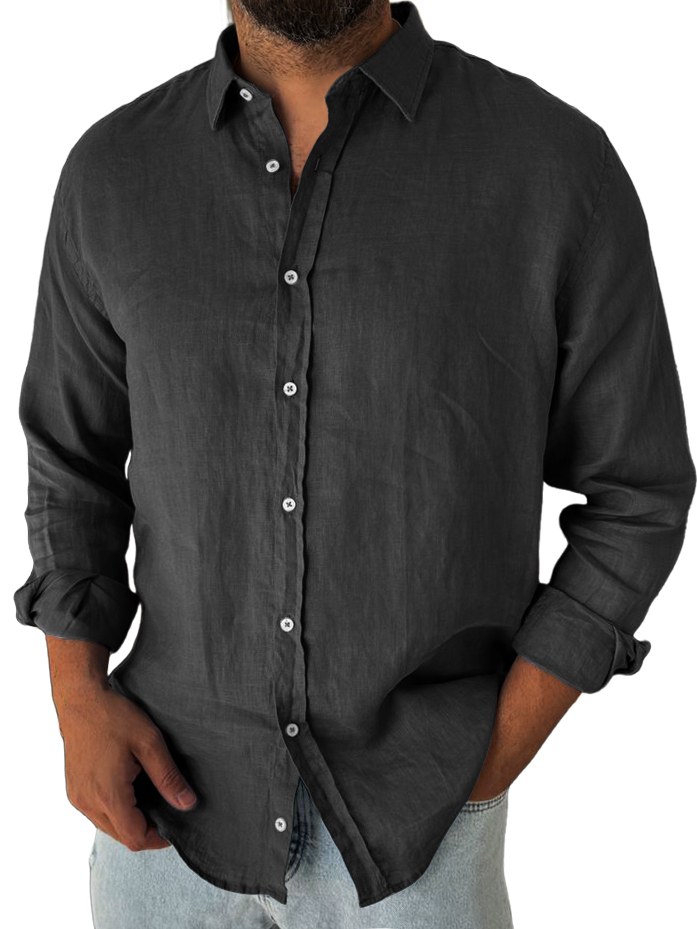 Herren Baumwolle und Leinen Freizeit, modisch, alltägliches Langarmhemd