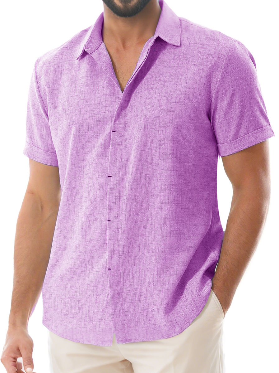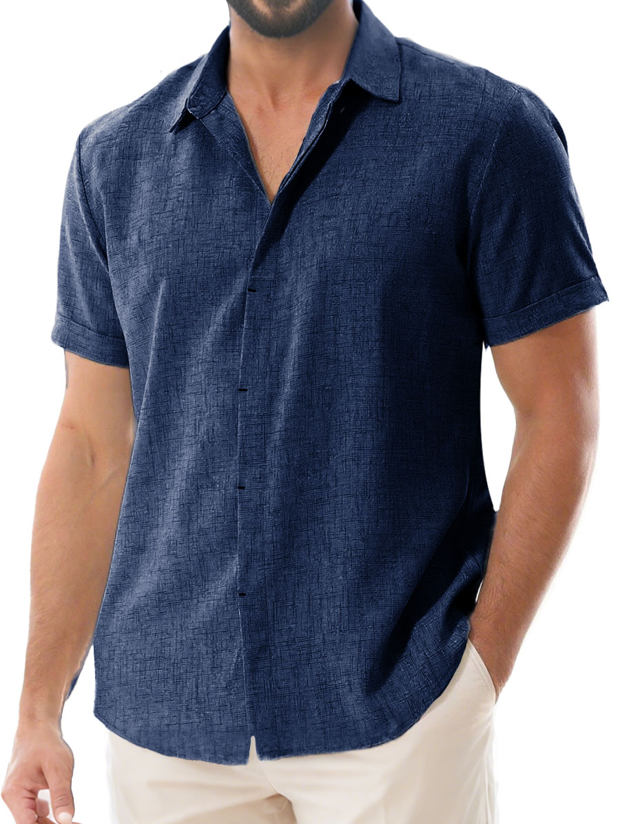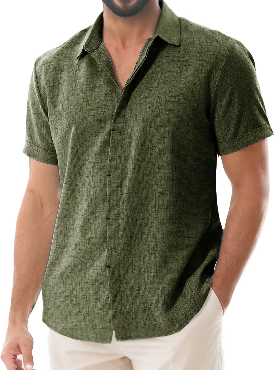Herren Tägliches Lässiges Imitationsleinen Weites Kurzarm Hemd mit Revers
