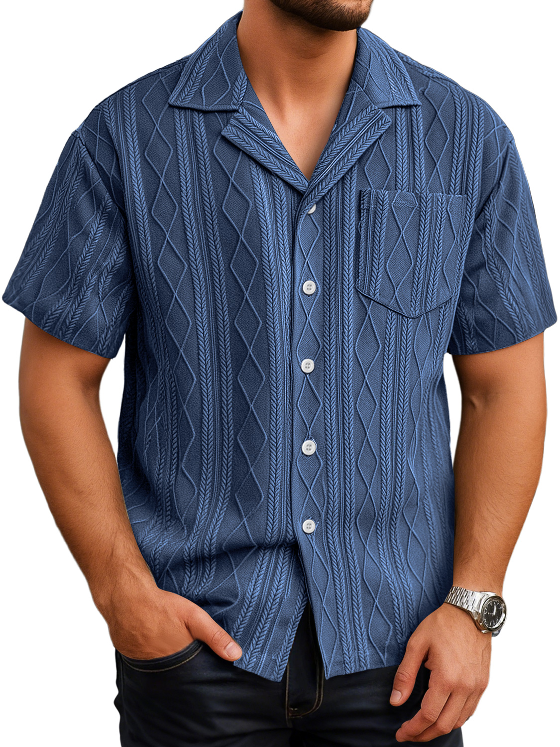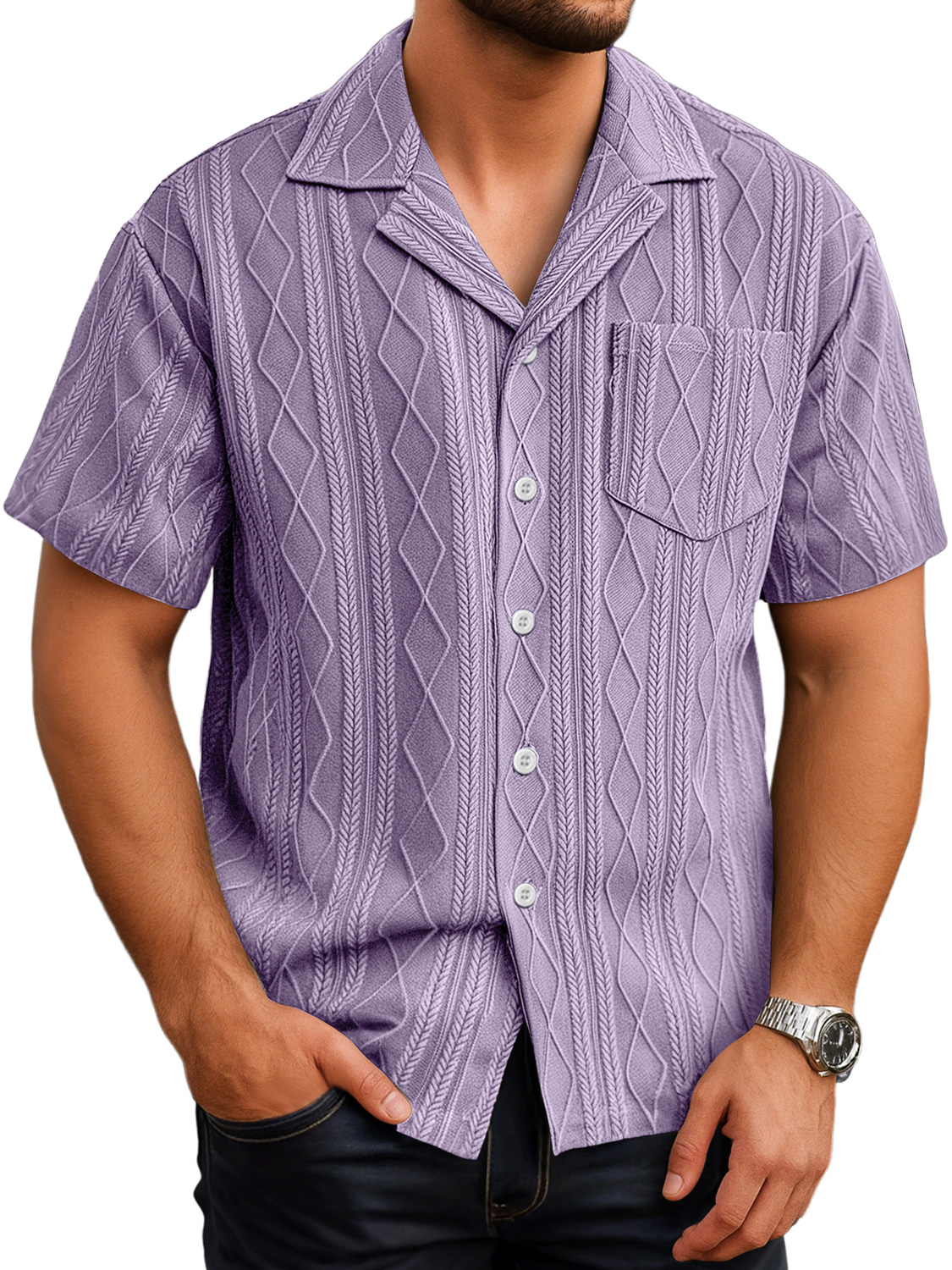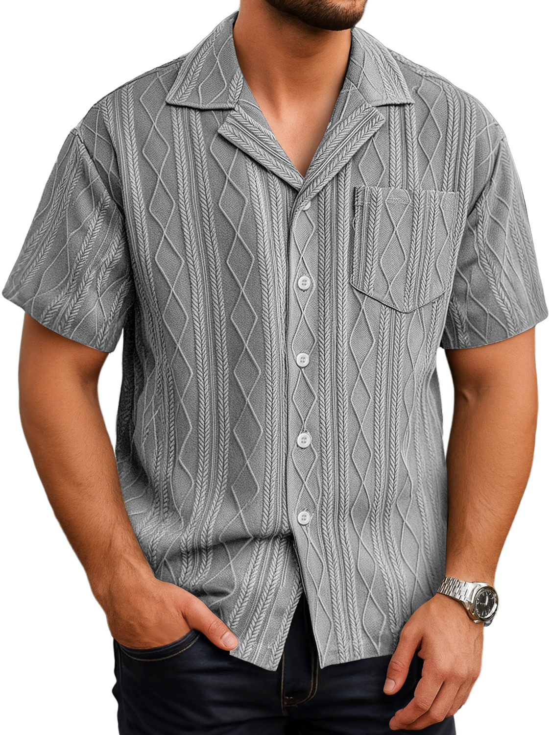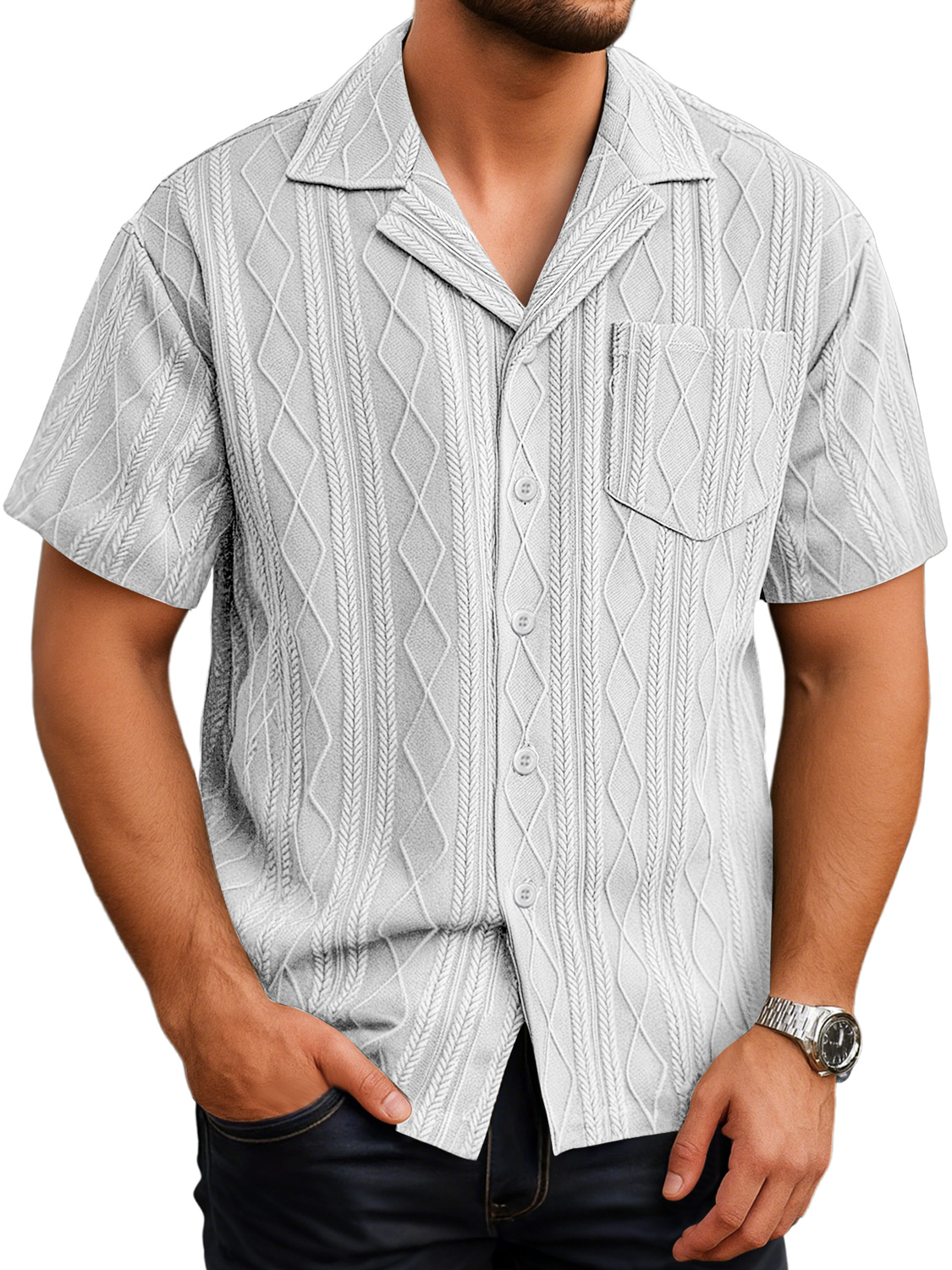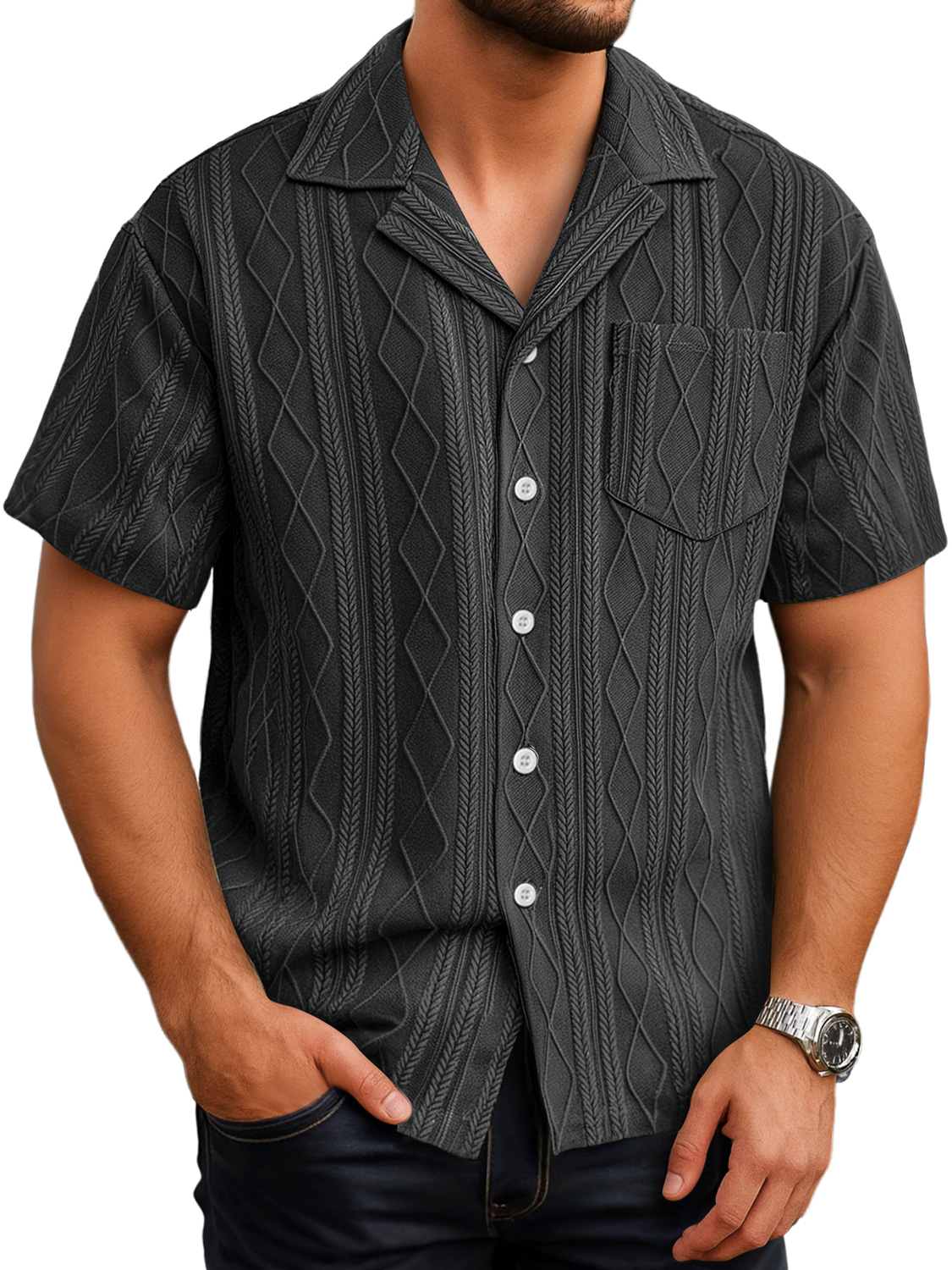 Herren Tägliches Lässiges Textur Taschen Einfarbig Bequemes Kurzarmhemd