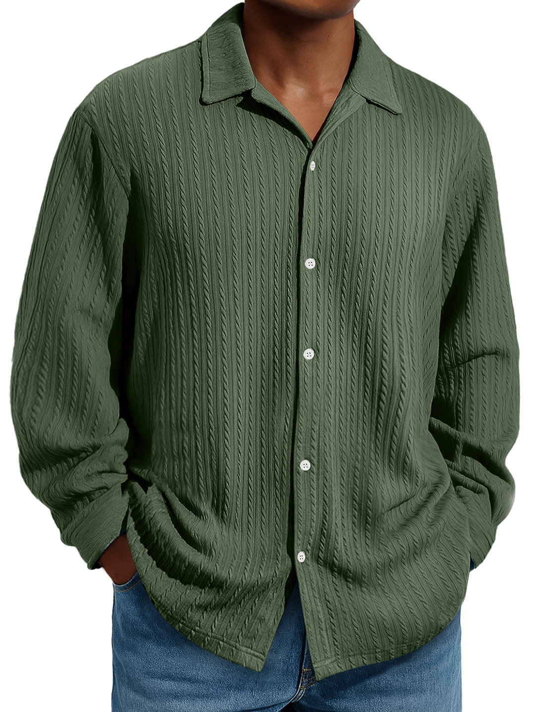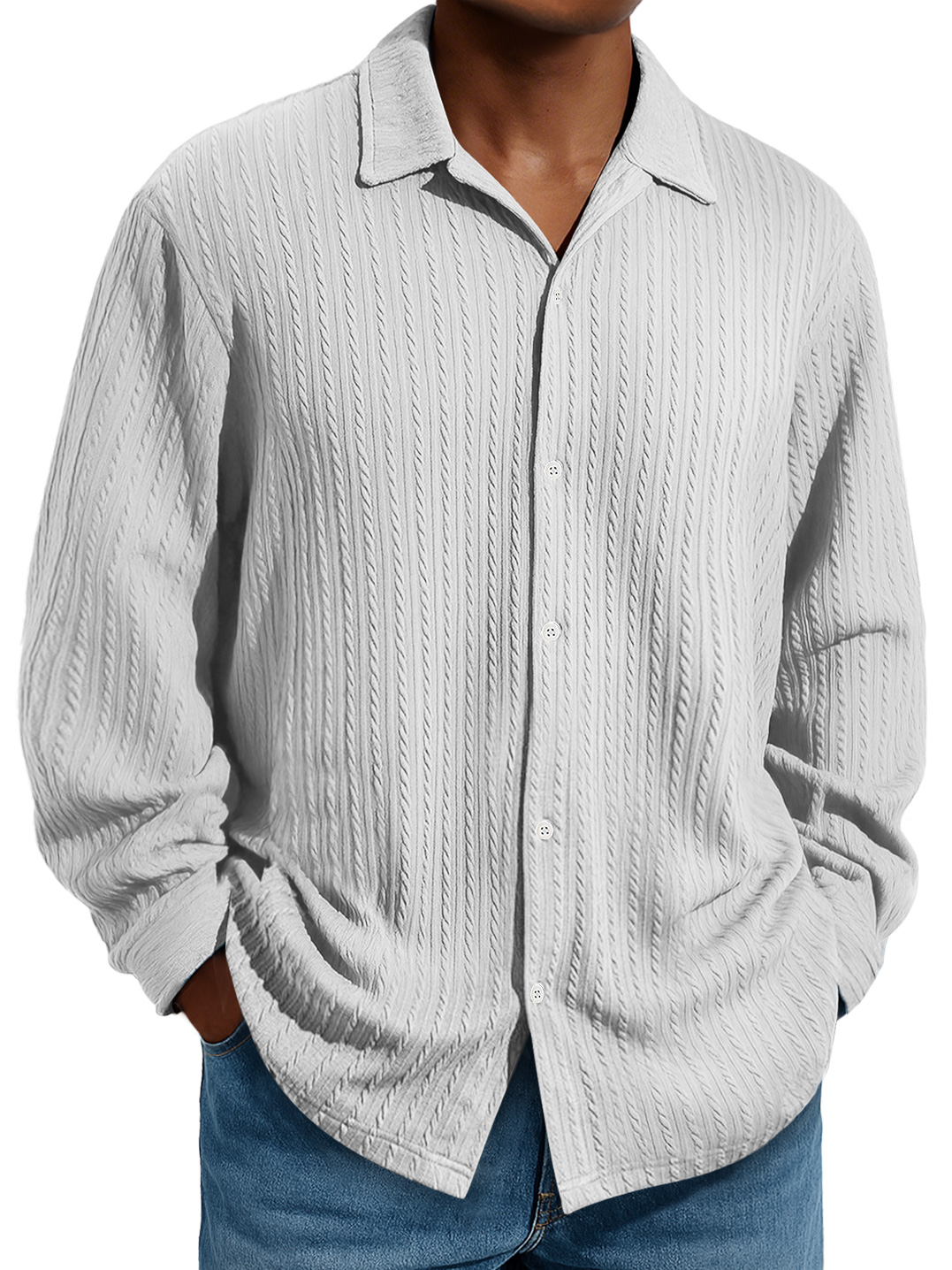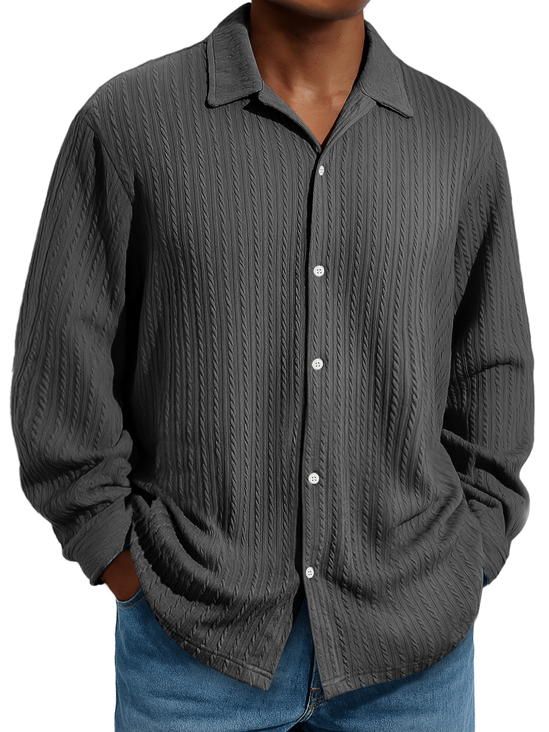 Herren Daily Jacquard Struktur Freizeit- und Komfort Langarmhemd