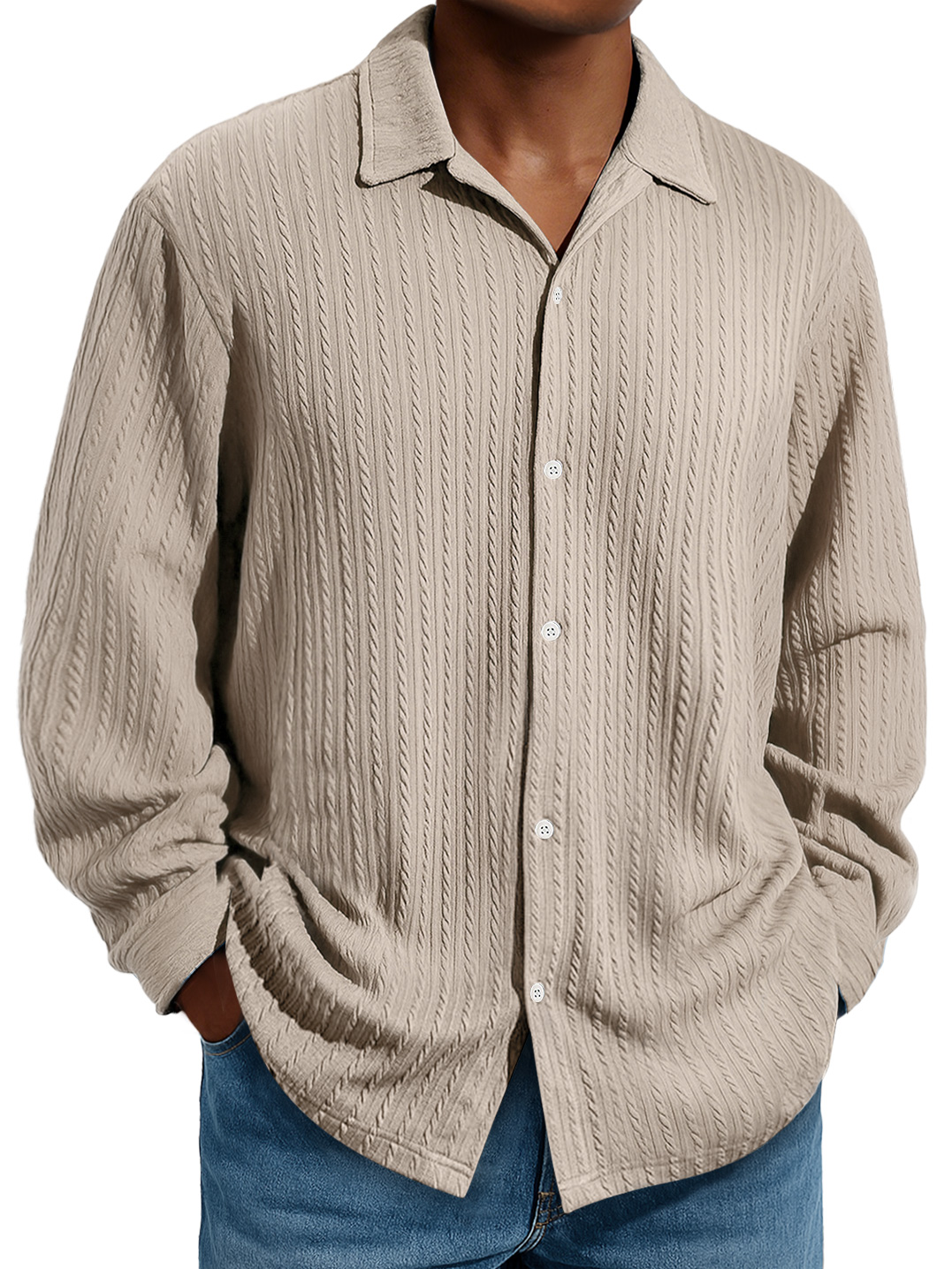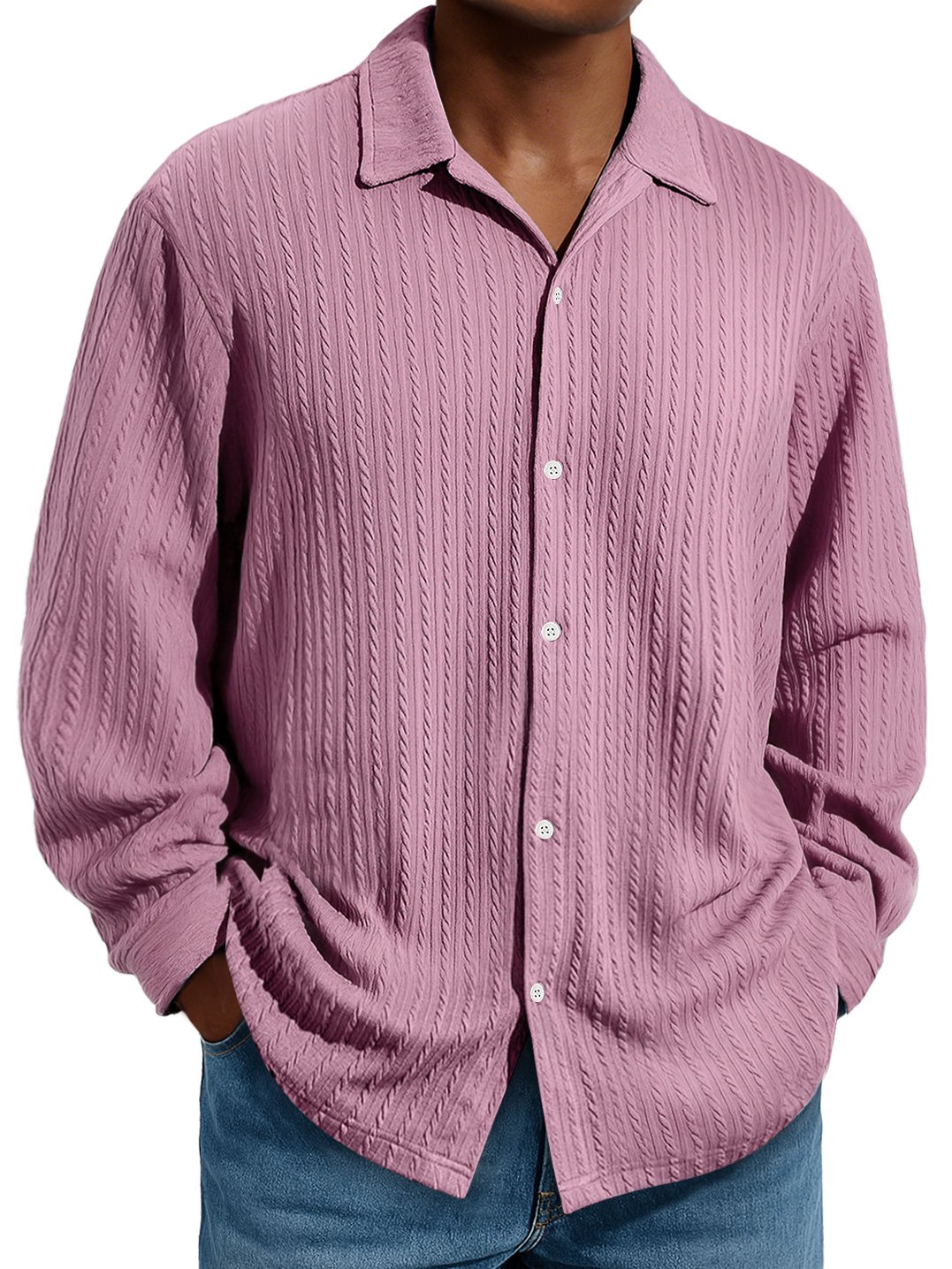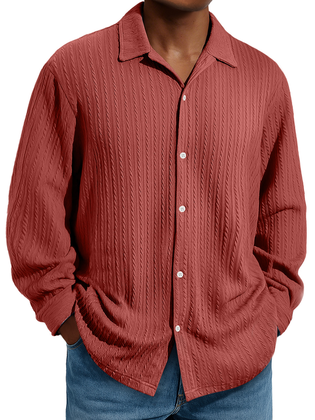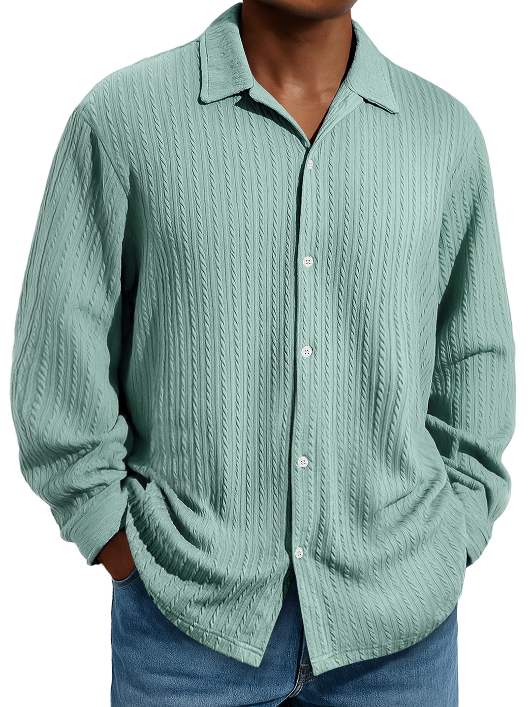 Herren Daily Jacquard Struktur Freizeit- und Komfort Langarmhemd