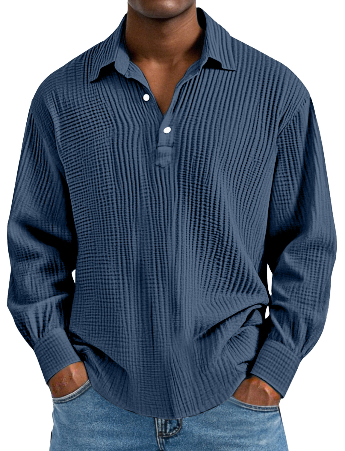 Herren Tägliches Einfaches Einfarbiges Plissiertes Langarm Poloshirt mit Revers