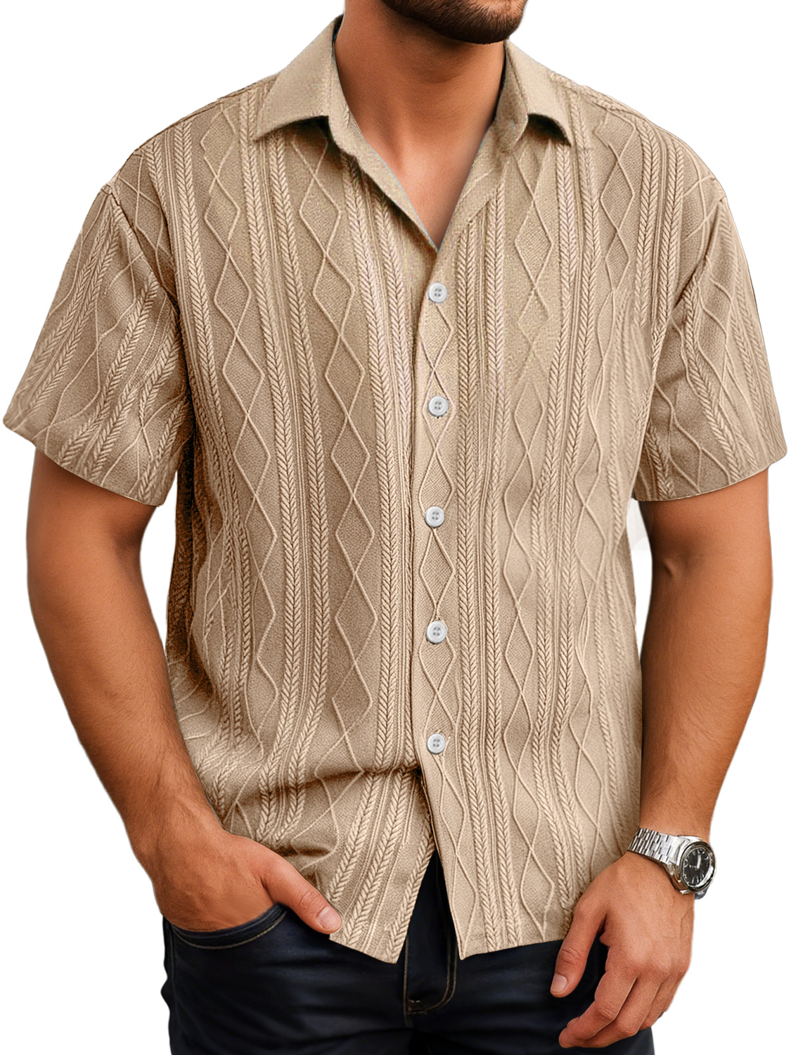 Herren Daily Texture Casual Revers Einfarbig Kurzarmhemd