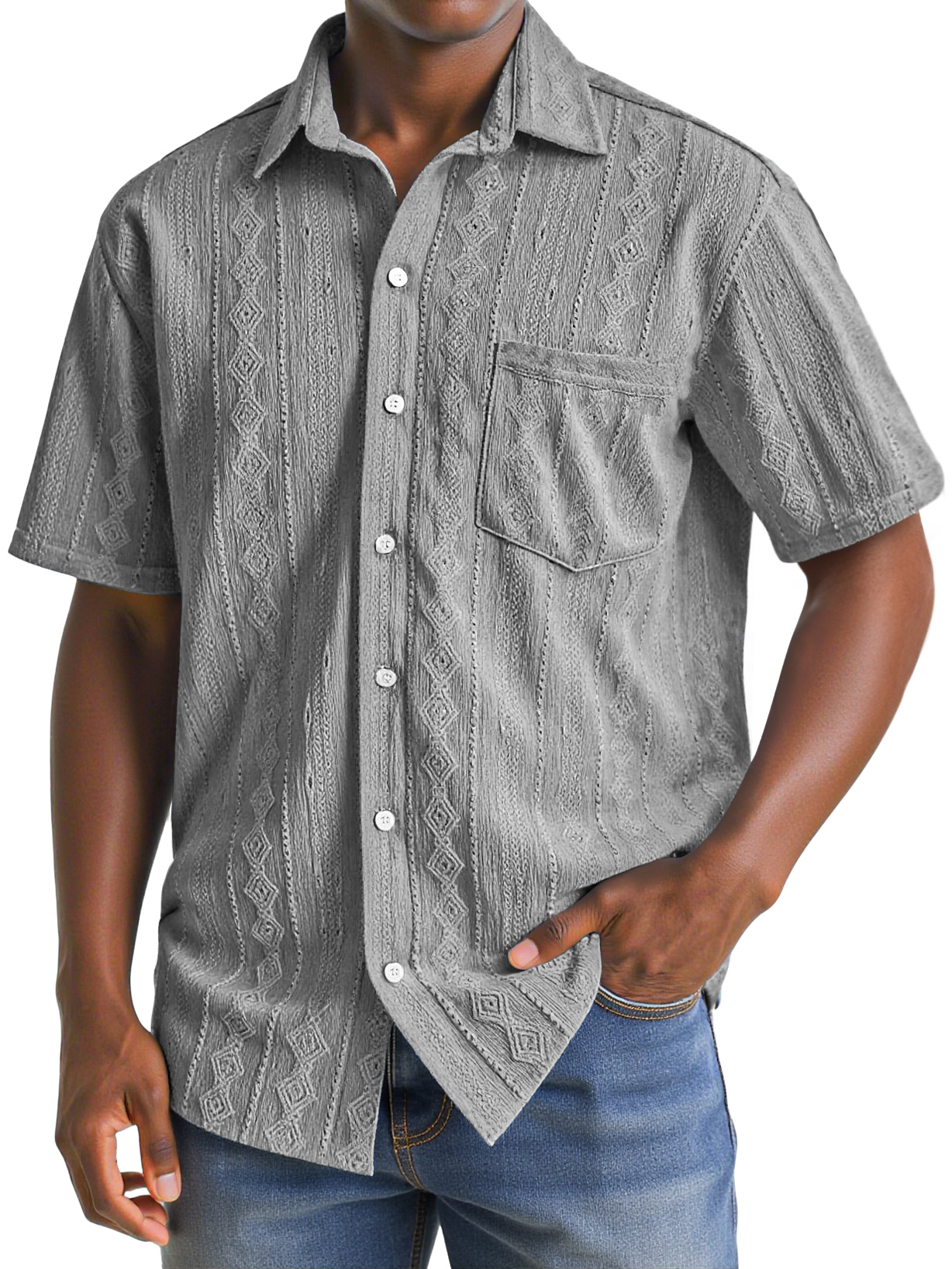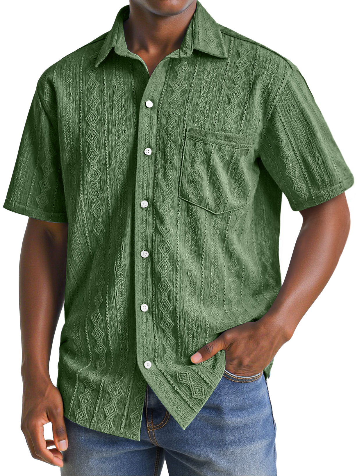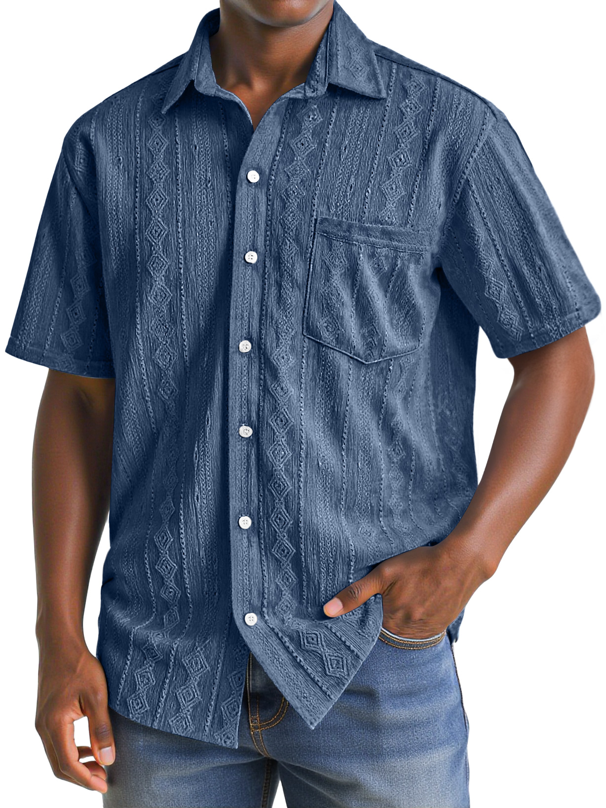 Herren Daily Texture Casual Pocket Revers Einfarbig Bequem Kurzarmhemd