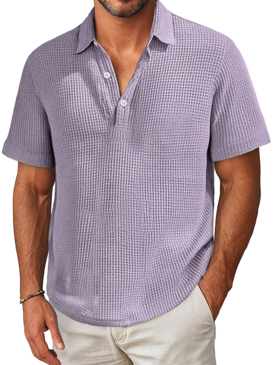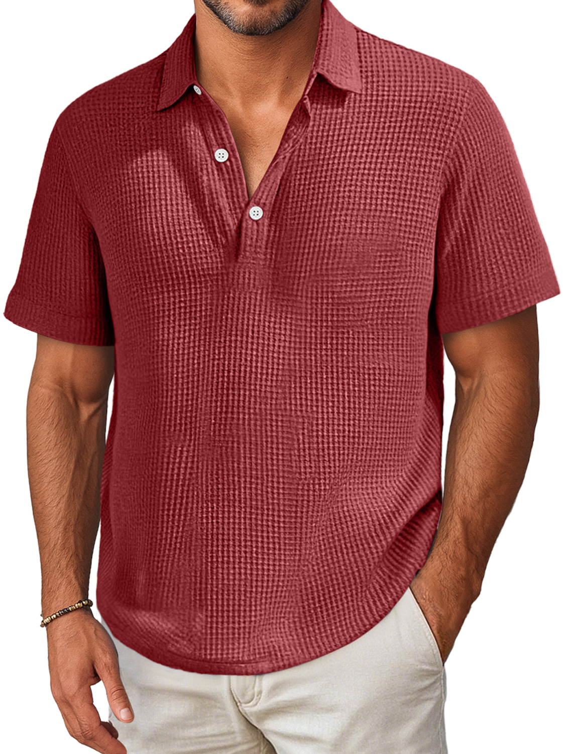 Herren Alltags Waffel Revers Knopfverschluss Freizeit Kurzarm Polohemd