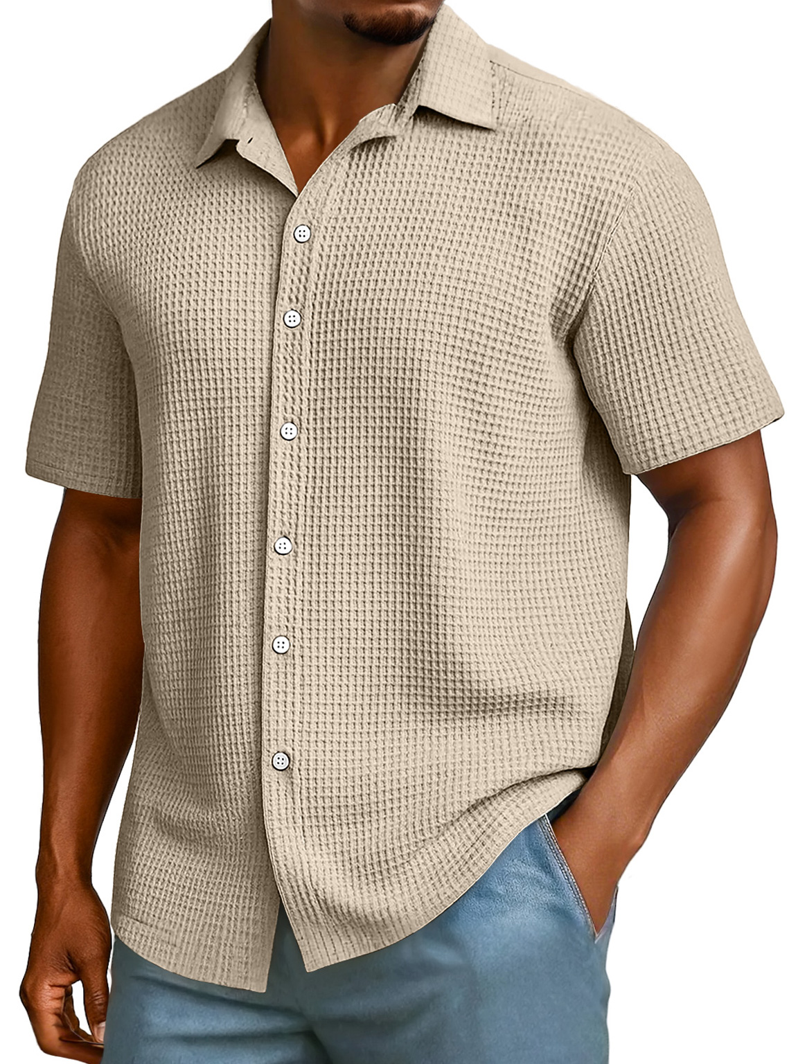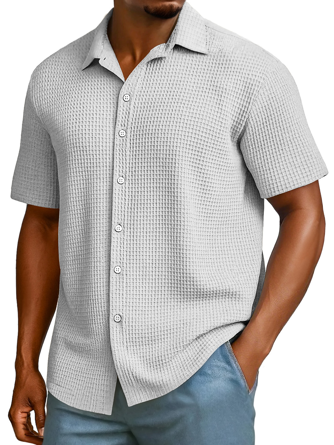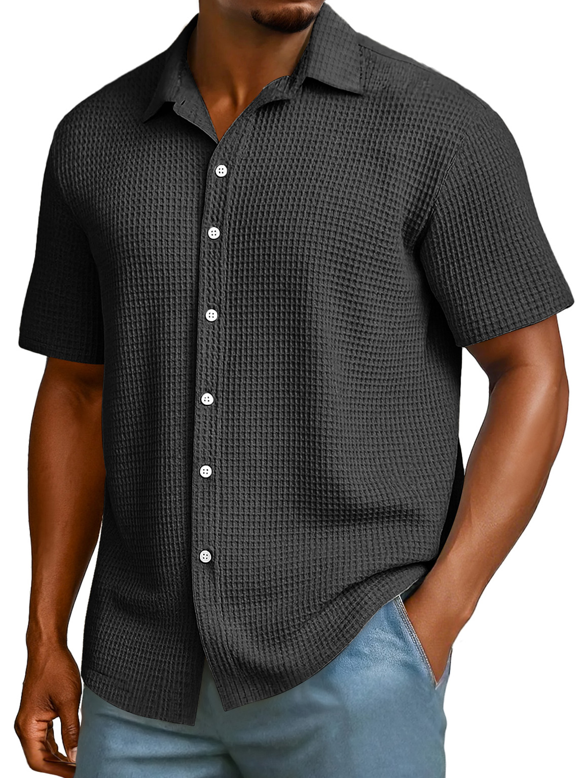 Herren Alltags Waffel Revers Freizeit Kurzarmhemd