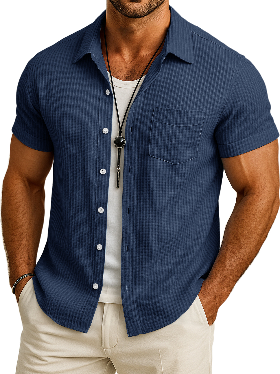 Herren modisches lässiges Waffelstoff Taschen Kurzarmhemd