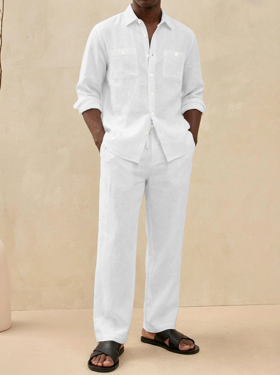 Herren Old Money Stil Freizeit Baumwoll- und Leinenhemd und Hosen Set