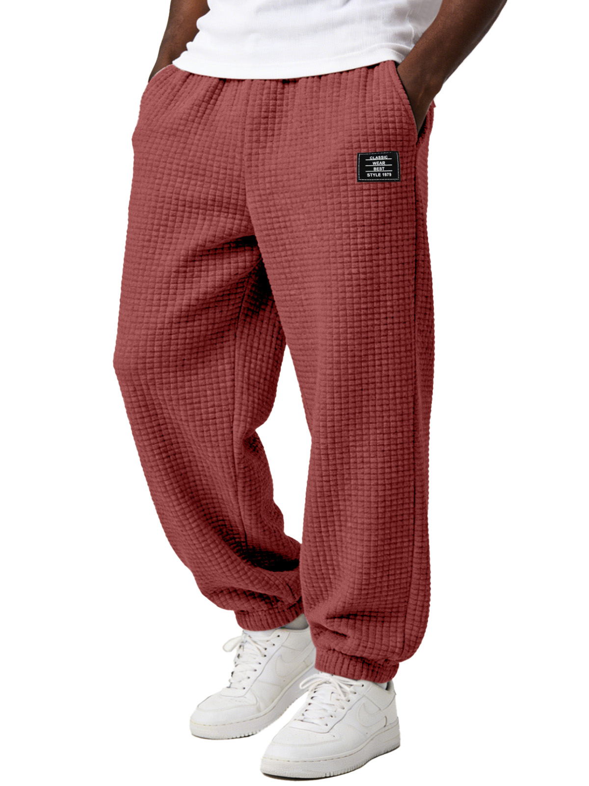 Herren einfache und vielseitige karierte bequeme lockere Jogginghosen mit Stickerei