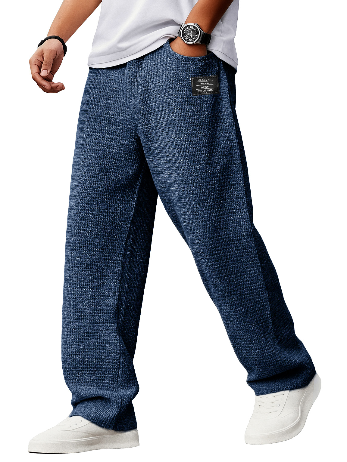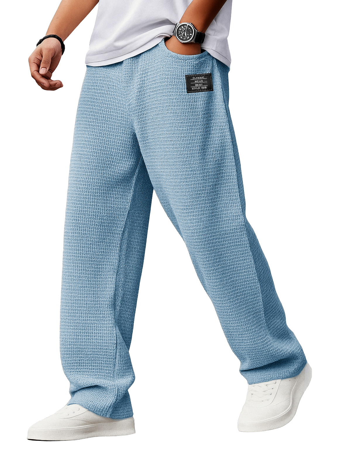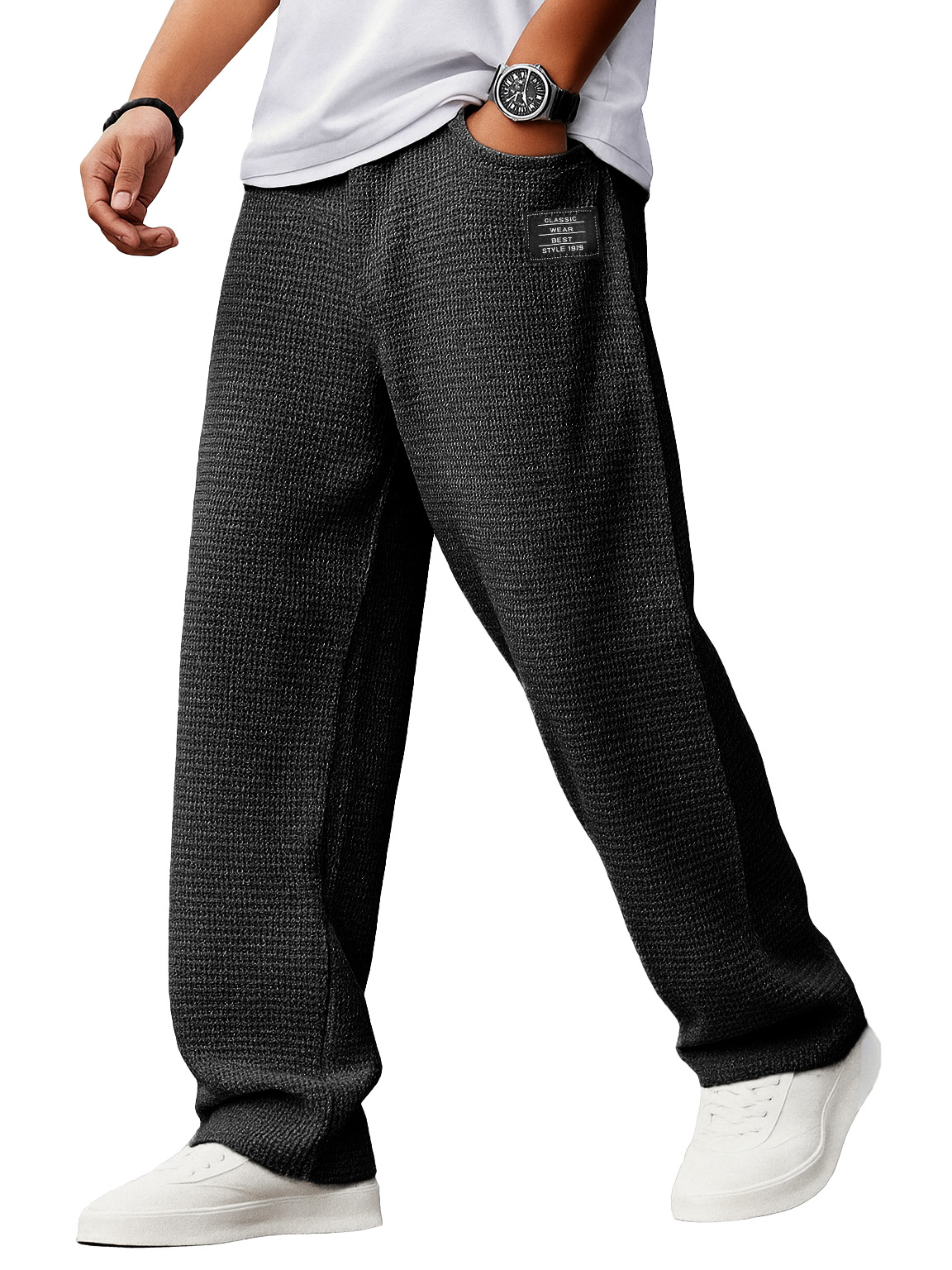 Herren Stylische Alltags-Waffelstoff-Hosen mit lockerer Passform, Kordelzugbund und gesticktem Logo